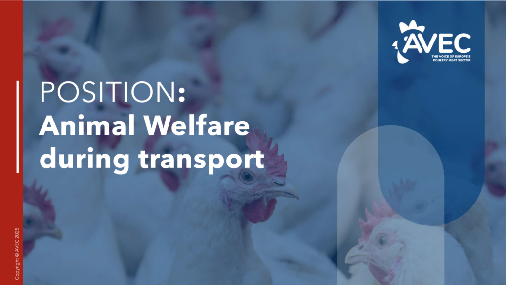 AVEC is actively engaged in the EU discussions on the Commission proposal on the welfare of animals during transport, working to ensure requirements are feasible for poultry, based on science, and deliver welfare improvements without unintended consequences.